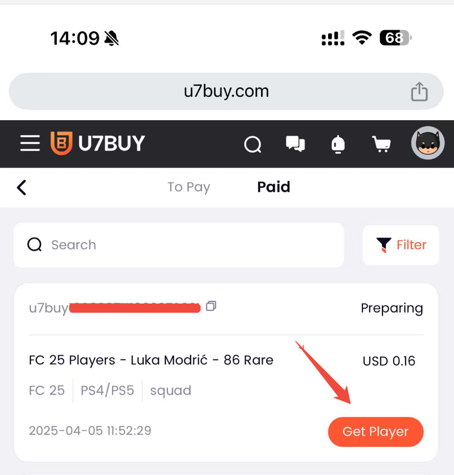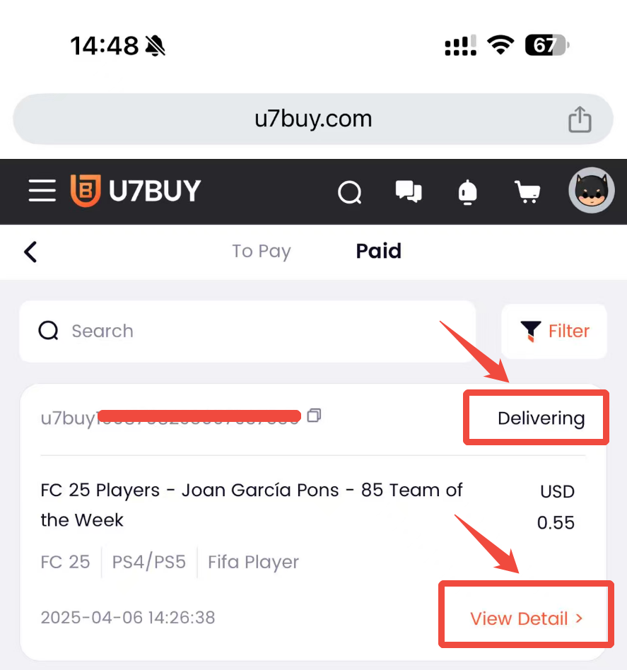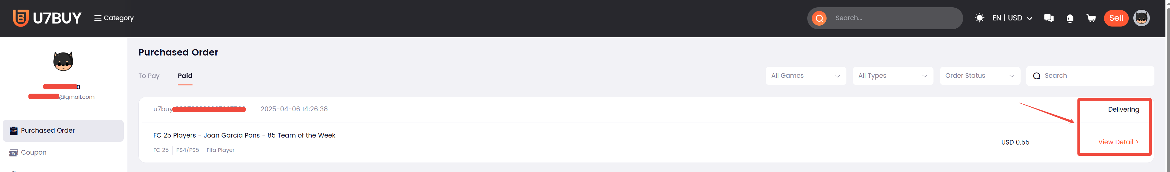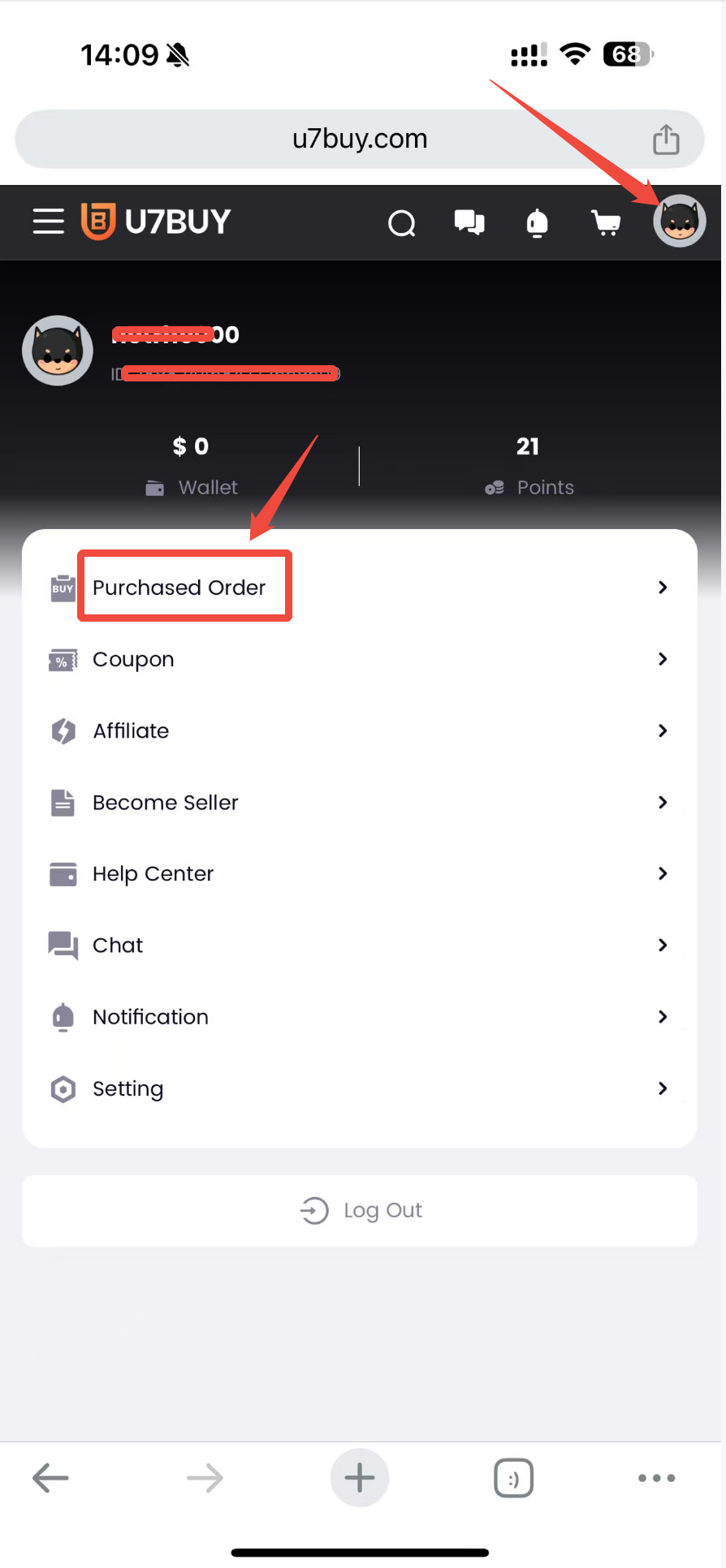 1. Log in your U7BUY member account, head to "Purchased Order" section.