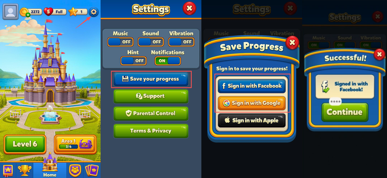- 6. Log in to Royal Match and confirm the coins arrived.